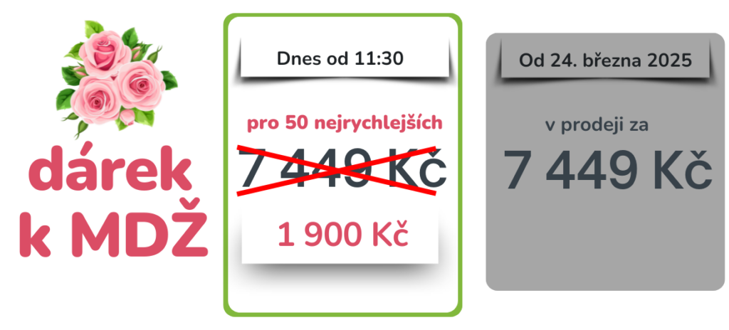 Dnes pouze stihnětě objednat za nejvýhodnější předprodejní cenu a teprve až kurz odstartujeme (tedy 24. března 2025) máte od té chvíle celé 3 týdny (= 21 dní) na rozmyšlenou.