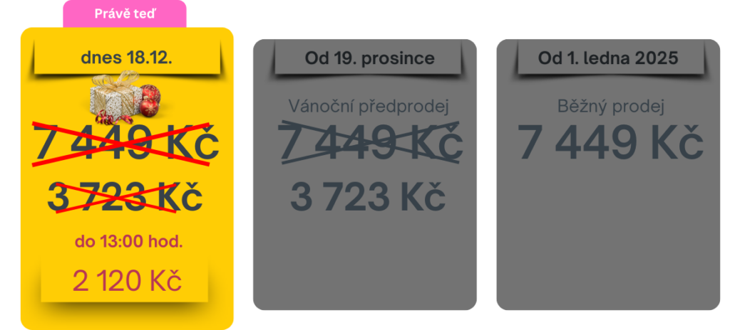 Aktuální předprodejní cena 2 120 Kč platí jen dnes ve středu 18. prosince do 13:00 hod.